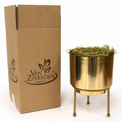 Timeless beauty and absolute dependability have made Paperwhites Narcissus the absolute all-time favorite Narcissus bulb for indoor forcing in winter. Clusters of pure white blooms will come 4-6 weeks after starting them. Very easy to grow, no special handling or treatment required. They are ready to start growing. No mess, or things to do. Just add water. Seven Paperwhite bulbs come pre-planted in a nursery pot with drainage, which is topped with greenish sheet moss for a festive finish. Included are an iron polished brass like decorative premium planter, sized approximately 6″x 6″x 6″, plus stand.