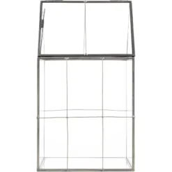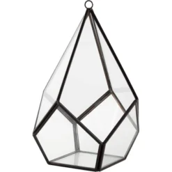 - D’Eco Glass Star Shaped Plant Terrarium with Black Accents and Wood Base. Comes fully assembled and measures 8″ x 8″ x 2.5″