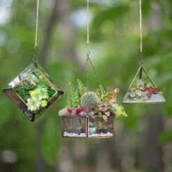 D’Eco Glass Geometric DIY Terrarium, Succulent & Air Plant- Hanging Mini Hexagon Shaped For Indoor Gardening Decor- Create Your Own Centerpiece
