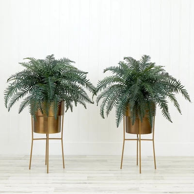 No need to venture deep into the jungle to bring a lush look into your home! Our NEW Artificial River Fern DIY Kit is here to help you do just that. Made from premium materials by expert horticulturists, this fountain of green fronds sprout to create an overgrowth of greenery that will add some serious visual interest to your space, all without maintenance. You can even bend the branches to fit in your space. With ruffled, textured, and long fronds, this piece provides a verdant touch that makes it look even more lifelike. Plus, you can shape the branches as you see fit, making them perfect for your space. The metal planter adds a chic touch, and you can choose to remove the stand, so you can customize it for an elevated look and feel. This DIY kit comes with everything you need to create the most lifelike home decor item you’ve ever seen, and it takes just 5 minutes or less to bring your vision to life. It’s a perfect family activity and makes a great gift for your loved ones, regardless of their age or occasion. So, what are you waiting for? Get that lush jungle look in your space today and transform it into a green oasis! With this Artificial Boston Fern DIY Kit, you’ll have all the jungle vibes you need to bring your home to life. DIY – Includes: 2 Metal Planters, 2 Faux Plants, 2 Rectangular Cardboards, 2 Styrofoam, 2 Spanish MossDifficulty: Perfect for beginnersEstimated time: 5 minutes or less1. Remove the plastic from the faux tree, then insert the trunk into the middle of the larger part of the Styrofoam until it feels sturdy. 2. Add the Styrofoam into the cardboard box, you’ll want it to be at the same surface level of the box. 3. Add the cardboard box with the faux tree inside the basket, and make sure the box is centered in the basket. 4. Once centered, add your Spanish moss, and remember to stretch it, so it covers the interior diameter of the basket. 5. Shape your tree by bending down the branches and then fluffing all the leaves6. Enjoy your new faux tree, made by you sit back and admireDesigner tip: Before decorating with moss, add fillers such as rocks, newspaper, or paper packs for an elevated look and stability. Designer tip: Steam the leaves for a more realistic look. Cleaning tip: Keep your tree looking beautiful for years by feather dusting the leaves and basket once a month.